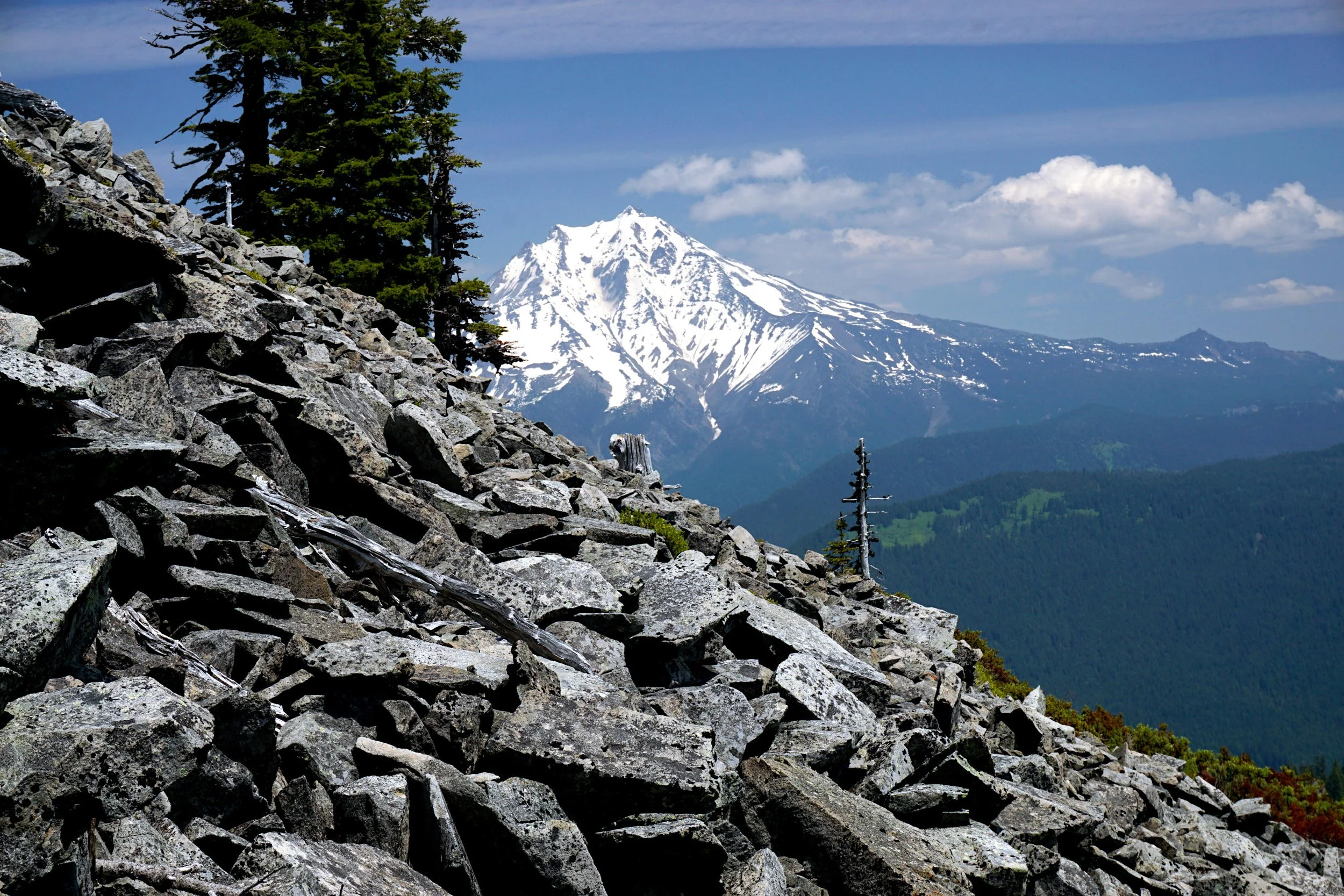 Hike: Bachelor Mountain is the highest point in the Old Cascades, and perhaps the best hike. There are three ways to approach the scenic summit, and all of them are worthwhile. My favorite is the long-forgotten Bruno Meadows Trail. This path climbs through ancient forest and passes a spectacular hanging meadow to a junction with the Bugaboo Ridge Trail, and then on to the rocky summit of Bachelor Mountain. As with all forgotten trails, expect a fare share of blowdown and brush. I assure you; it is worth it!
