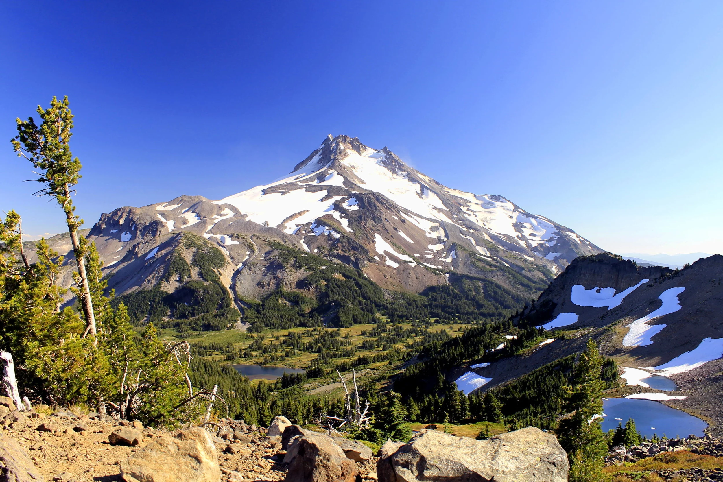Pick up the PCT at a signboard at the trailhead. Hike a hundred yards to a junction where you meet up with the main trail. Turn left and hike through alpine forest with small meadows as you ascend gently out of the basin that holds Breitenbush Lake. Pass by a couple of talus slopes where pikas meep as you pass and enter forest burned in the Pyramid Butte Fire in 2010. Look out to your right to rocky Pyramid Butte (Hike 62), badly scorched in the fire bearing its name. Once you leave the fire zone behind you will begin a moderate ascent through unburned forest until you reach a crest at about 6,100 feet. Descend for a bit before beginning another moderate climb; soon the trail levels out and passes through a series of rocky meadows that are covered in snow until late in July most years. The tip of Mount Jefferson peeks out behind Park Ridge, reminding you of your destination ahead. At approximately 2.5 miles from the trailhead, leave the forest behind and enter a moonscape of rockslides, snow patches and scattered ponds fed only by snowmelt. The trail braids here in many places as it passes by ponds and through scattered clumps of weather-beaten trees. Follow cairns across this stark, rocky basin until you reach Park Ridge’s snowy, boulder-strewn headwall. Soon you will arrive at a permanent snowfield; follow footsteps here up to the summit of Park Ridge, where the view will knock your socks off. Mount Jefferson towers over the meadows and lakes that make up Jefferson Park. A more amazing view is hard to imagine.