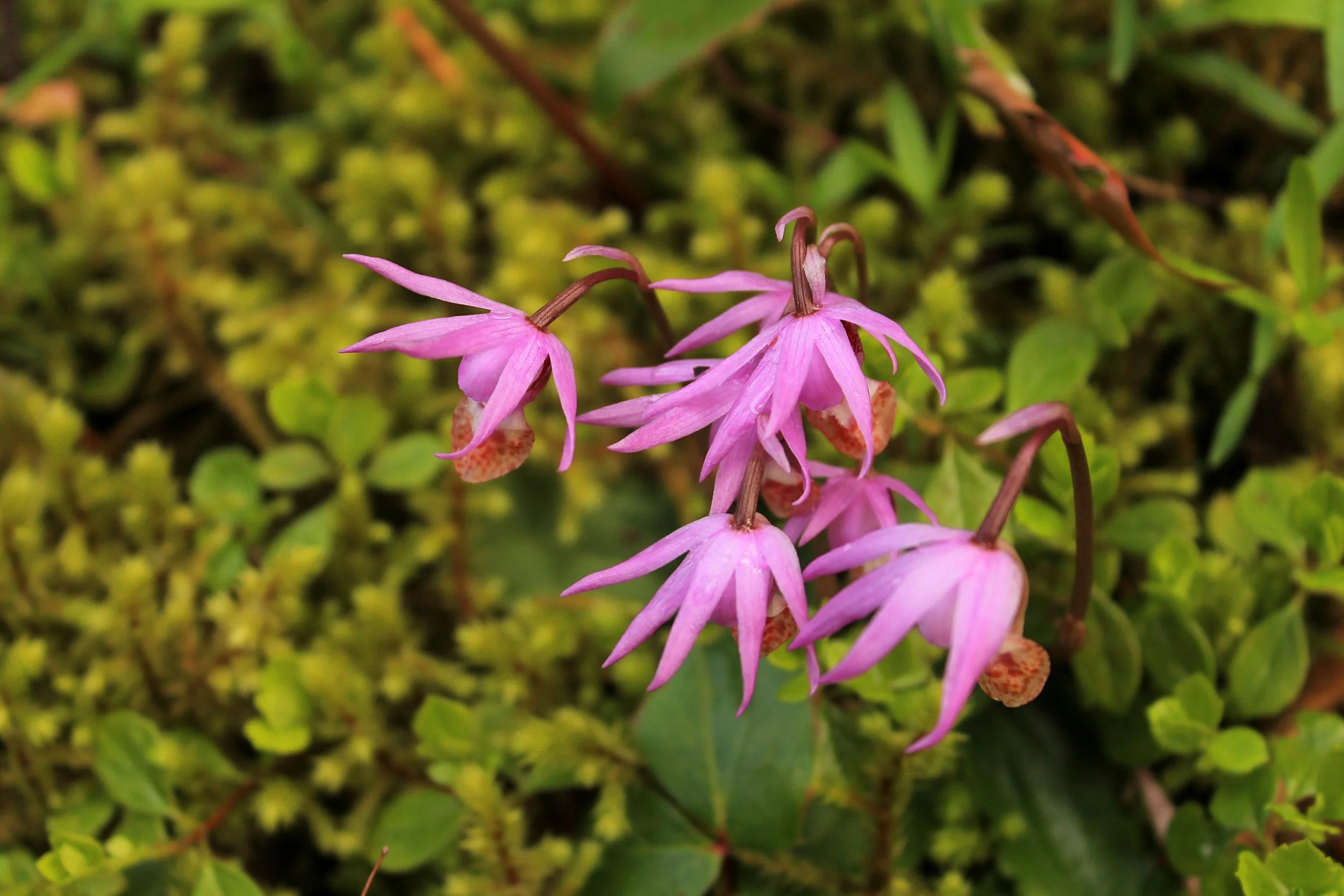 From the south end of the parking lot, look for a trail heading south towards the cliffs. The trail climbs gently through lovely forest following a small creek before climbing away, becoming steeper and steeper as it works its way up Mitchell Point. Eventually the trail reaches a talus slope framed dramatically by white oak and great views of the west end of the Gorge. After cresting above the talus, the trail winds through some nice older forest. In April the forest floor here is carpeted with the lovely pink calypso orchid. Freshly-risen orchids give off an incredible perfume that only lasts for a day or two – you may need to get down on your hands and knees and sniff a great number of flowers until you find one that is scenting – you won't regret it! At 0.8 mile from the trailhead, reach a set of powerlines at an open saddle.
