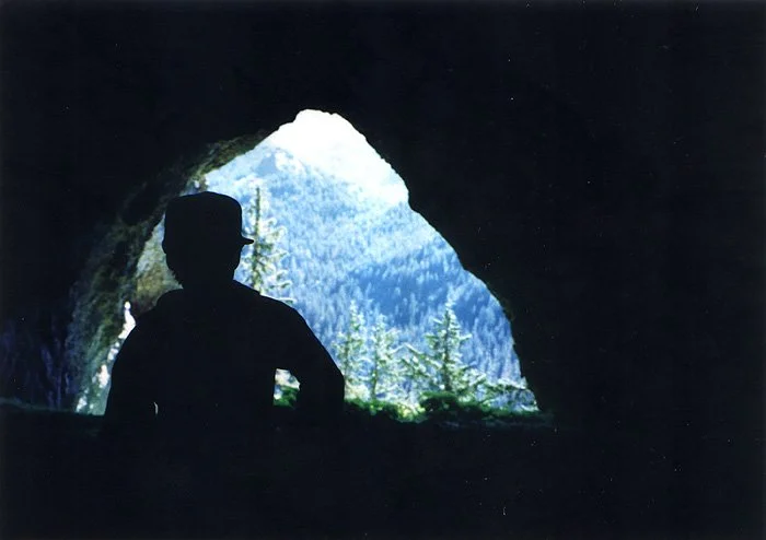 Before you begin the long hike back to your car, I encourage you to investigate Boca Cave, with its framed view of Mount Jefferson. To find the cave, retrace your steps back from the summit 200 yards to a saddle. Look for user paths branching off to your right here. Make your way down the steep slope here and bend back to your left, traversing the cliff edge 100 yards to the cave. If it is possible to find a more spectacular lunch spot than the summit, this is it. Please do not disturb anything inside of the cave – not only is it federally protected, but it is quite fragile. Do not try to scramble down the hillside from the cave back to the Triangulation Trail – a fall here would be dire.